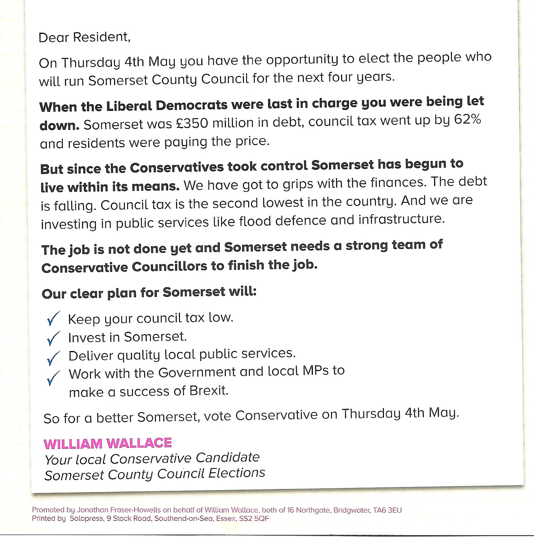 Election Communication from William Wallace, Conservative Candidate for Somerset County Council