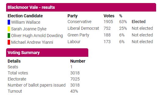Detailed election results – Blackmore Vale Somerset County CouncilĀ Source: Somerset County Council Share this: Share on Facebook (Opens in new window) Facebook Share on X (Opens in new window) X Email a link to a friend (Opens in new window) Email