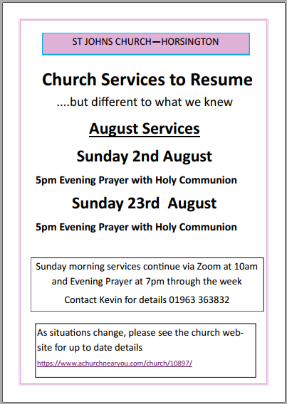 Sunday 2nd August – Horsington