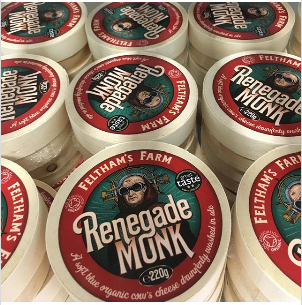 For the technically minded, it’s an organic, soft rind washed (in ale), blue cheese, made using locally sourced organic milk. For the non-technically minded it’s a cheese for grown-ups to be enjoyed with an English white wine, Sauternes, Barsac or Montbazillac, and can also be gently baked and used in imaginative recipes – see the renegade Monk website. https://www.felthamsfarm.com/our-cheese/