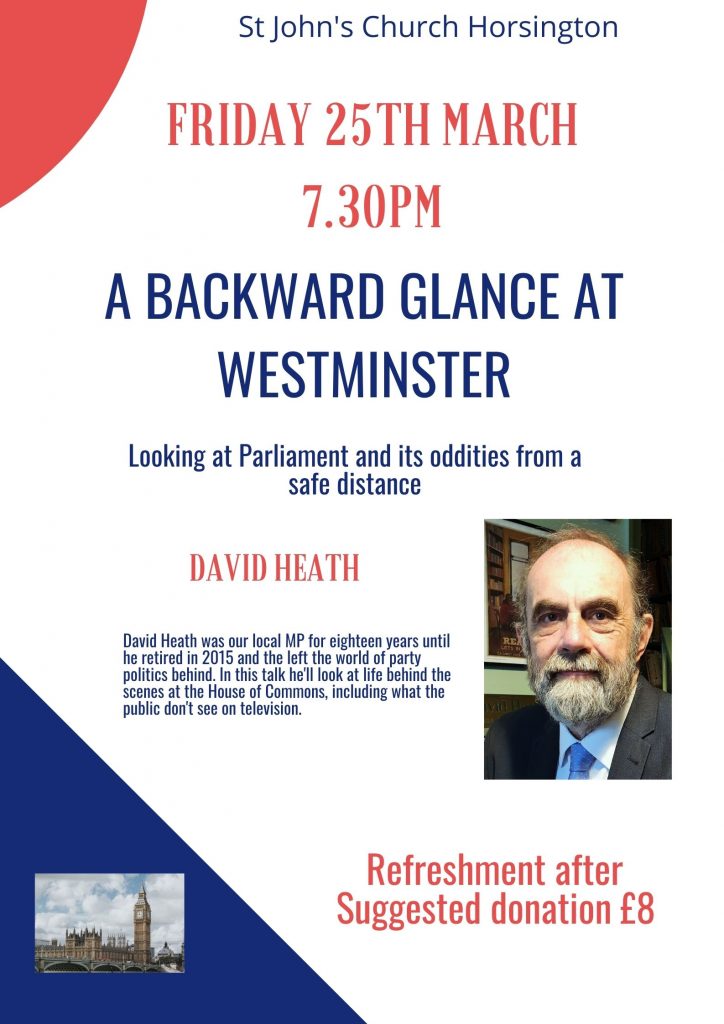 David Heath, who represented Horsington in parliament for 18 years will be giving a talk in St John’s Church, Horsington on Friday 25th march at 7.30 pm.